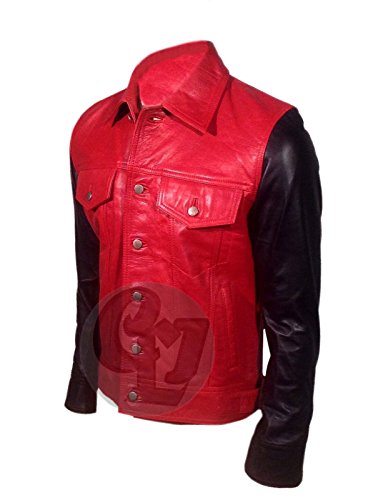 Best Seller! Justin Bieber Black & Red Vintage Bomber Slim Fit Stylish Leather Jacket (XL) Review